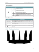 Chapter 1 Get to Know About Your Router LED Explanation Name Status Pulsing orange Solid white on Red Pulsing white Off Indication The system is starting up The router is working normally. No internet connection or Wi-Fi is off. The firmware is being upgraded or WPS connection is being established. Do not disconnect or power off your router. Power is off.