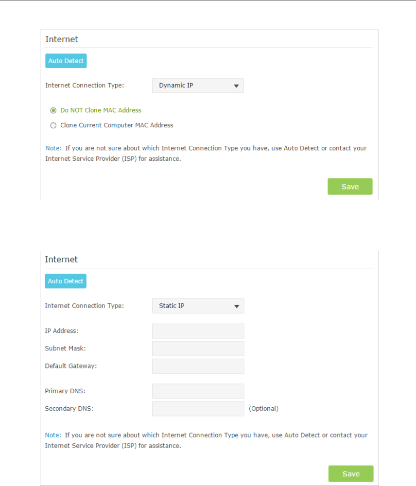 2 ) If you choose Static IP, enter the information provided by your ISP in the