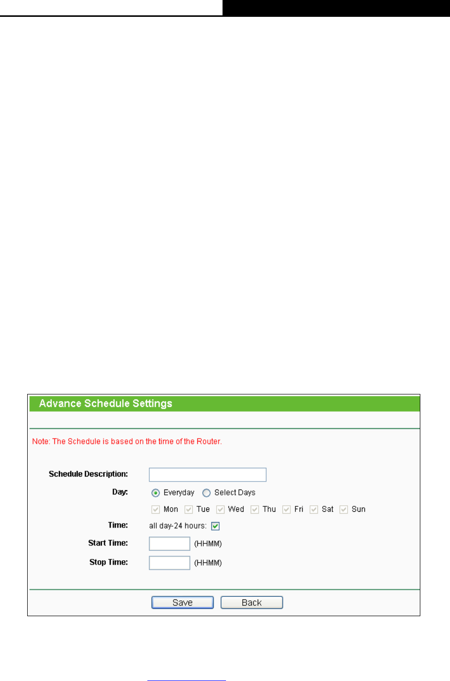 4. In Time field, you can select all day-24 hours or you may enter the Start Time and Stop Time