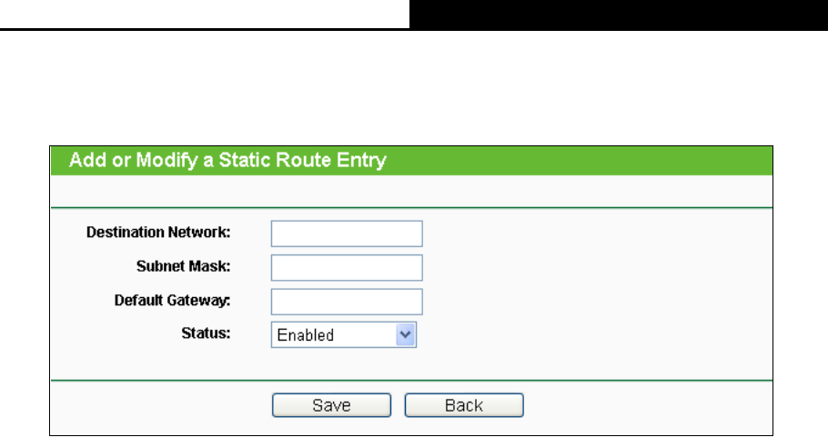 the valid route entries in use. The Destination IP address, Subnet Mask, Gateway, and Interface