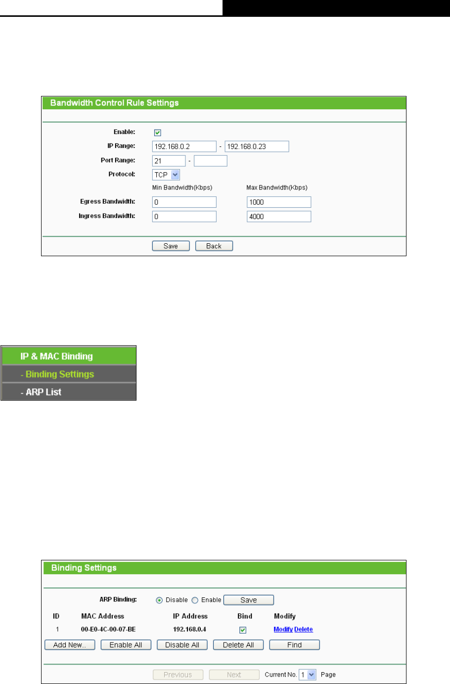 This page displays the IP & MAC Binding Setting table; you can operate it in accord with your