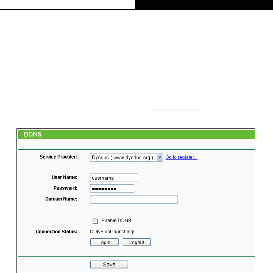 If the dynamic DNS Service Provider you select is www.dyndns.org, the page will appear as