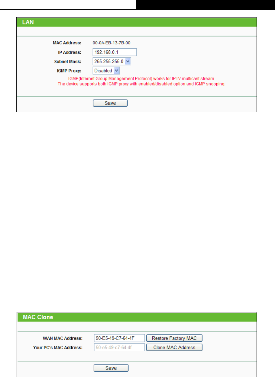 MAC Clone”, you can configure the MAC address of the WAN on