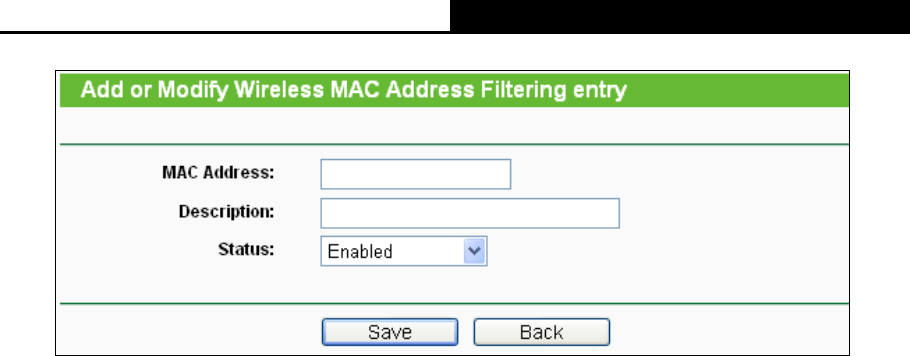 Figure 4-25 Add or Modify Wireless MAC Address Filtering entry