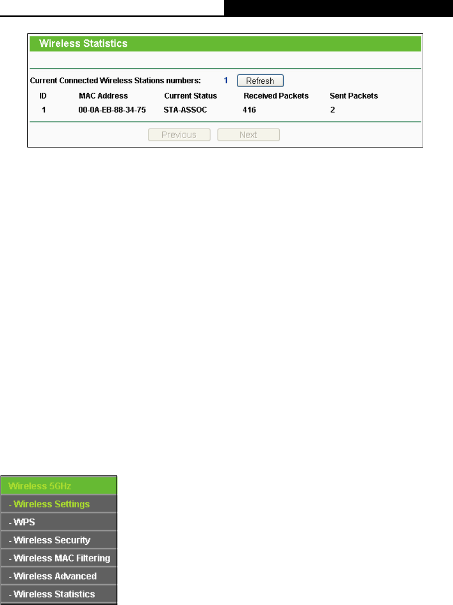 If the numbers of connected wireless stations go beyond one page, click the Next button to go to