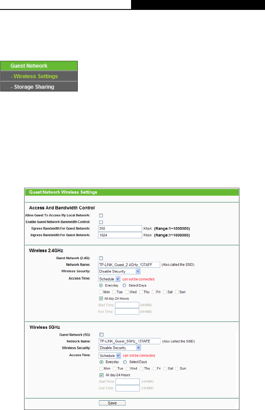 There are two submenus under the Guest Network menu (shown in Figure 4-43): Wireless