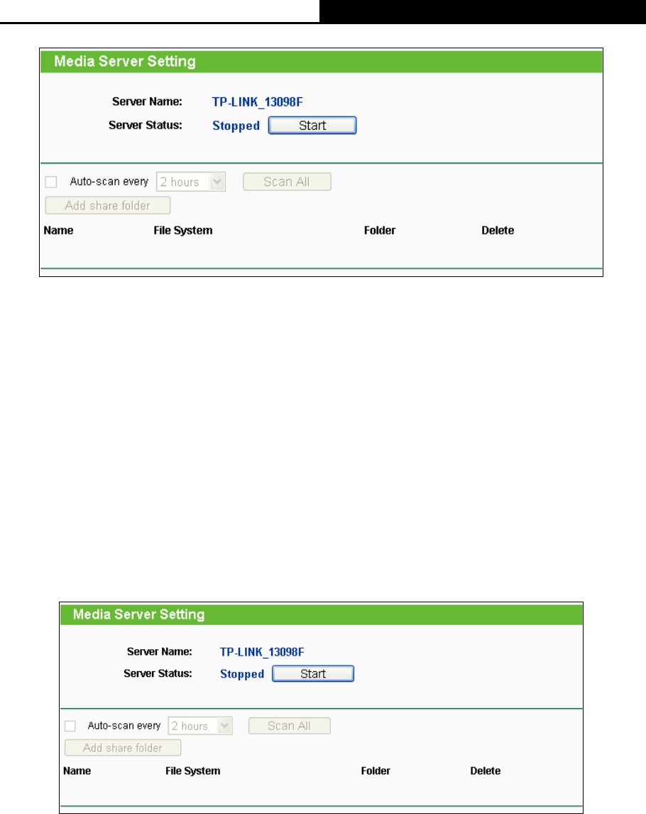 2. Click the Start button to start the media server, and then the screen will appear as shown in