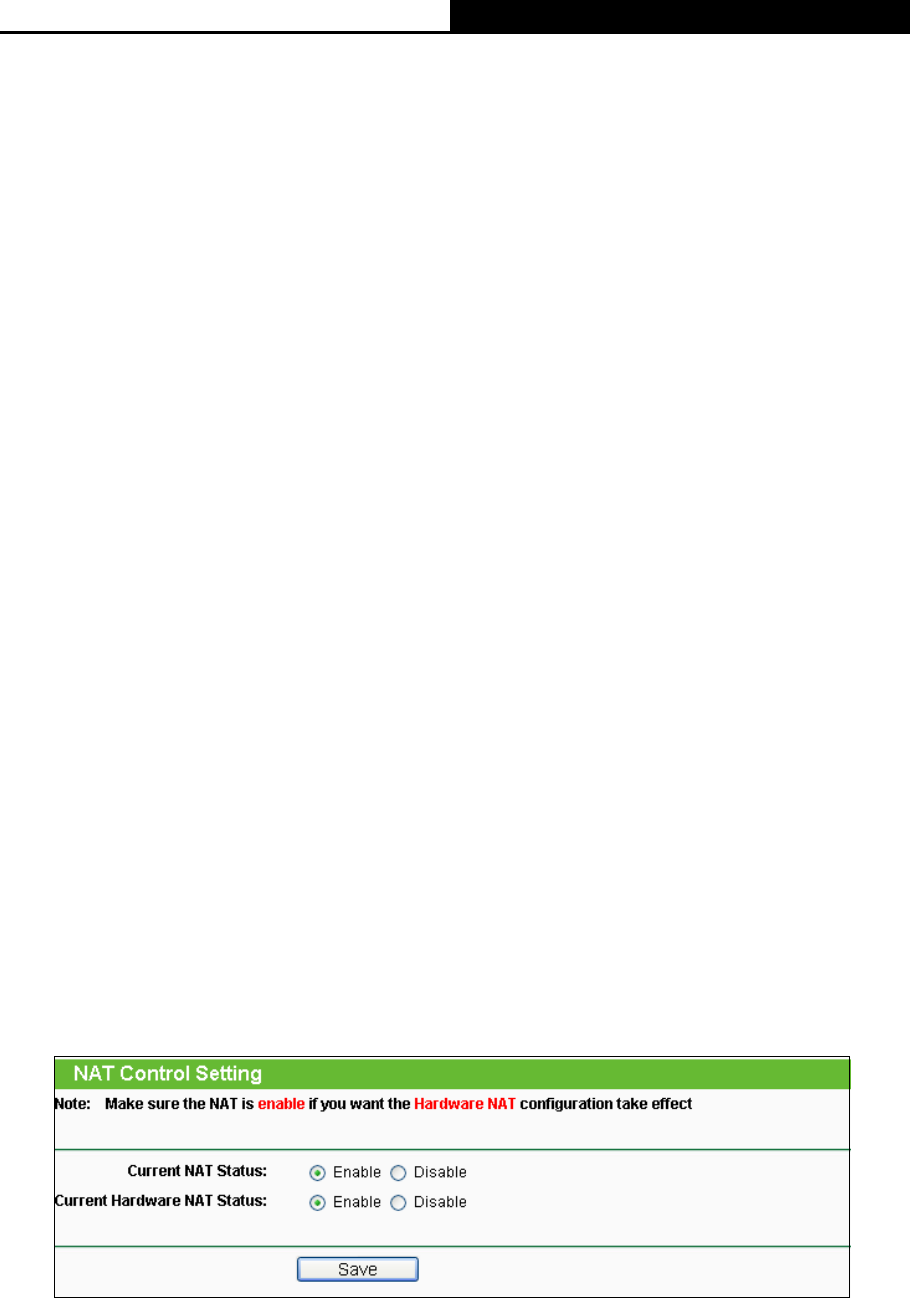 Choose “NAT”, and you can enable or disable the NAT and Hardware NAT Control feature. The