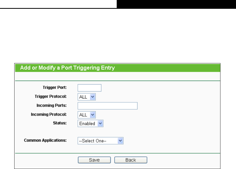 Status - The status of this entry, Enabled means the Port Triggering entry is enabled.