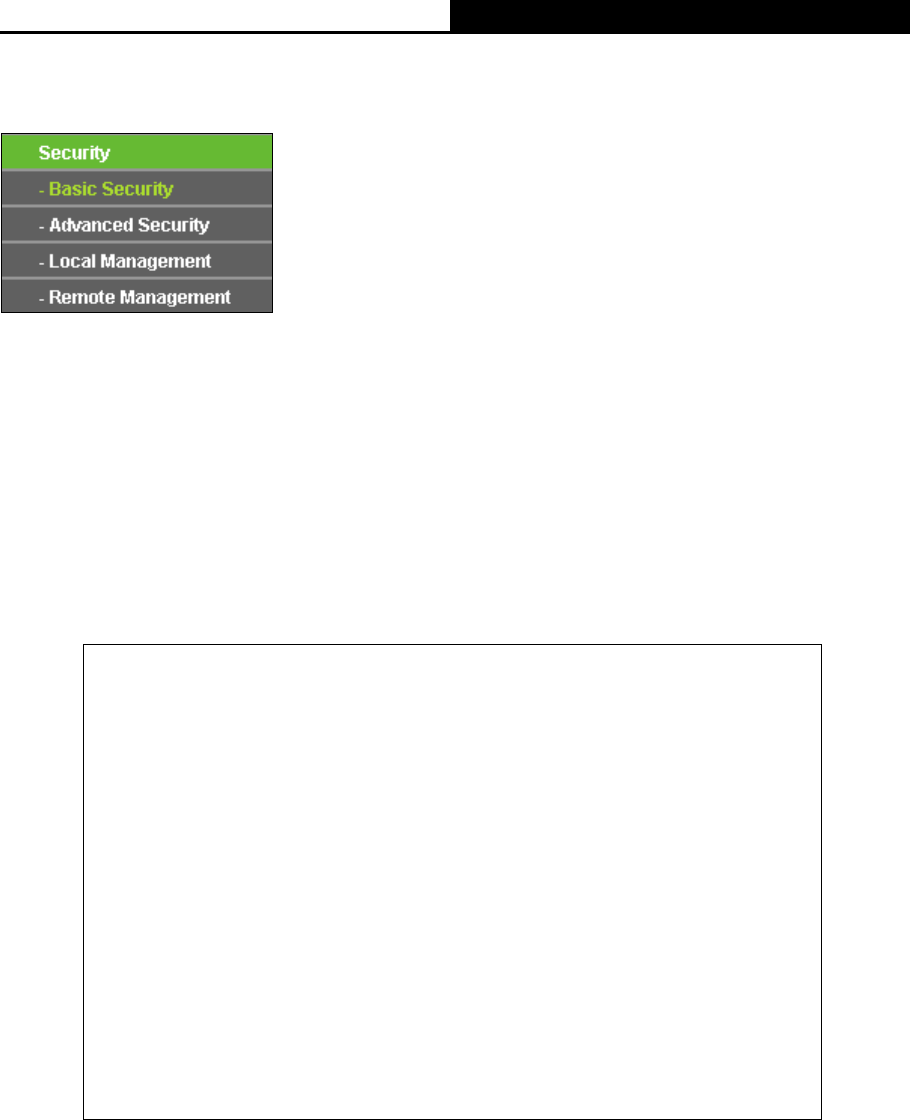 There are four submenus under the Security menu as shown in Figure 4-72: Basic Security,