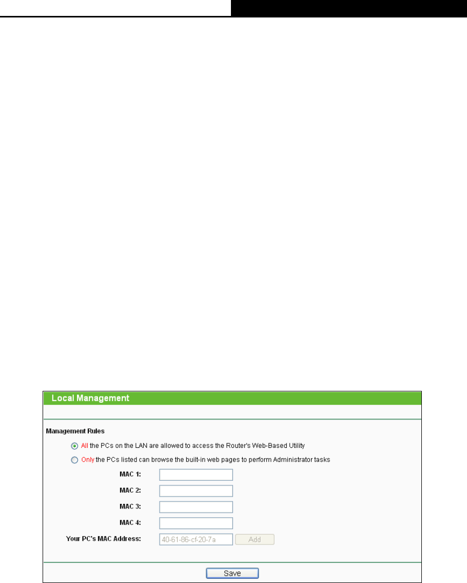 Web-Based Utility” is checked. If you want to allow PCs with specific MAC Addresses to access