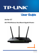 Archer C7 AC1750 Wireless Dual Band Gigabit Router Package Contents The following items should be found in your package: Archer C7 AC1750 Wireless Dual Band Gigabit Router DC Power Adapter for Archer C7 AC1750 Wireless Dual Band Gigabit Router Ethernet Cable Quick Installation Guide Note: Make sure that the package contains the above items. If any of the listed items are damaged or missing, please contact your distributor.