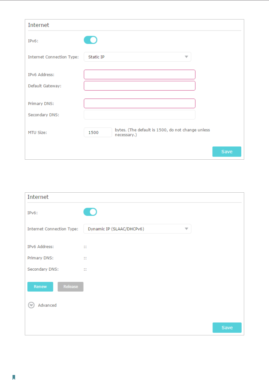 2 ) Dynamic IP(SLAAC/DHCPv6): Click Advanced to input further information if