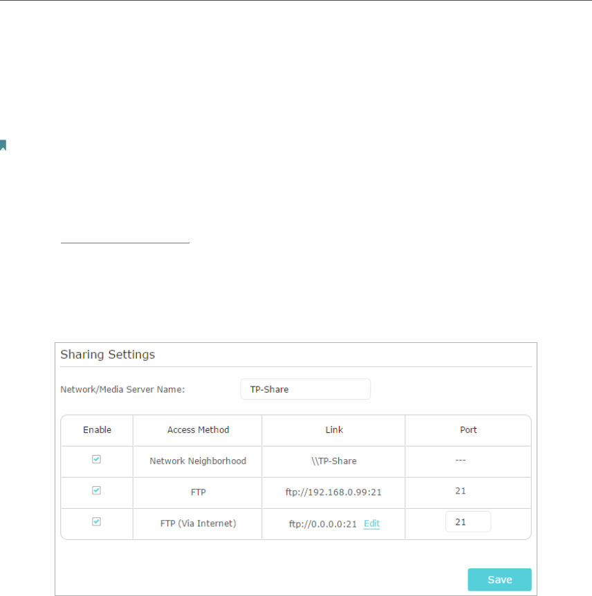 4. Refer to the following table to access your USB disk remotely.