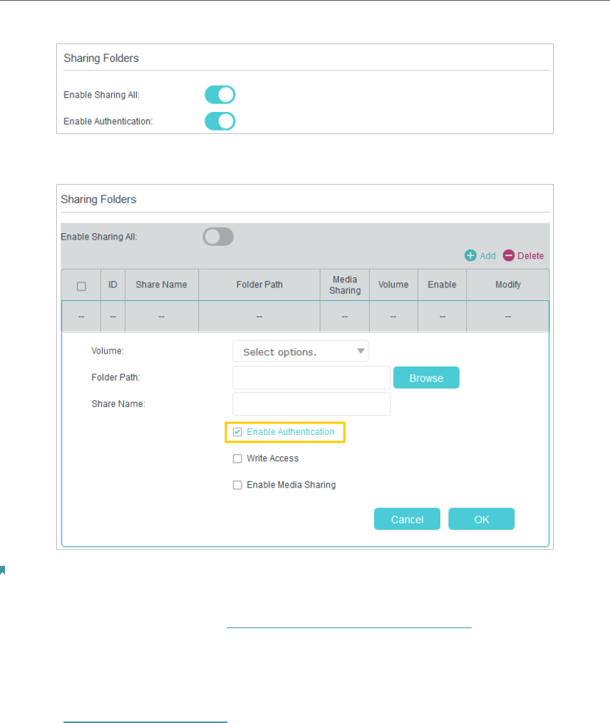 • If Sharing All is disabled, enable Authentication for specific folders.