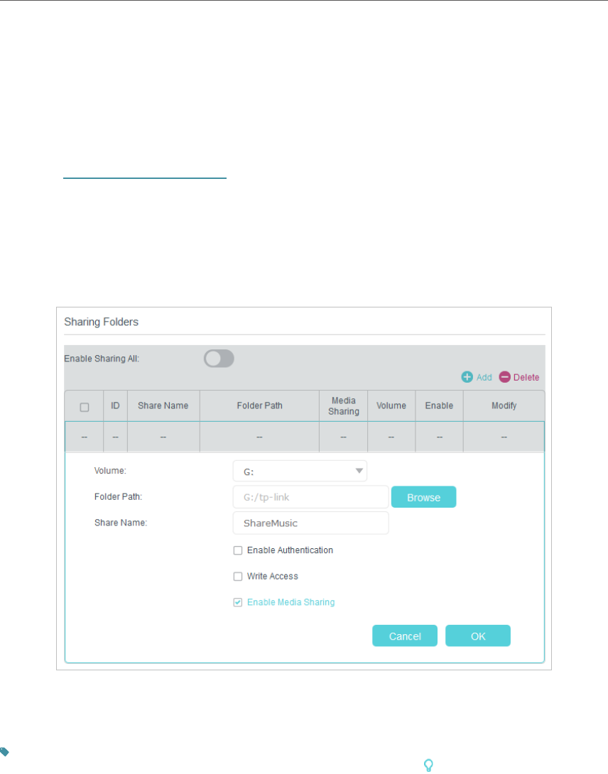 By default, Sharing All is enabled so all content on the USB disk is shared. If you want to