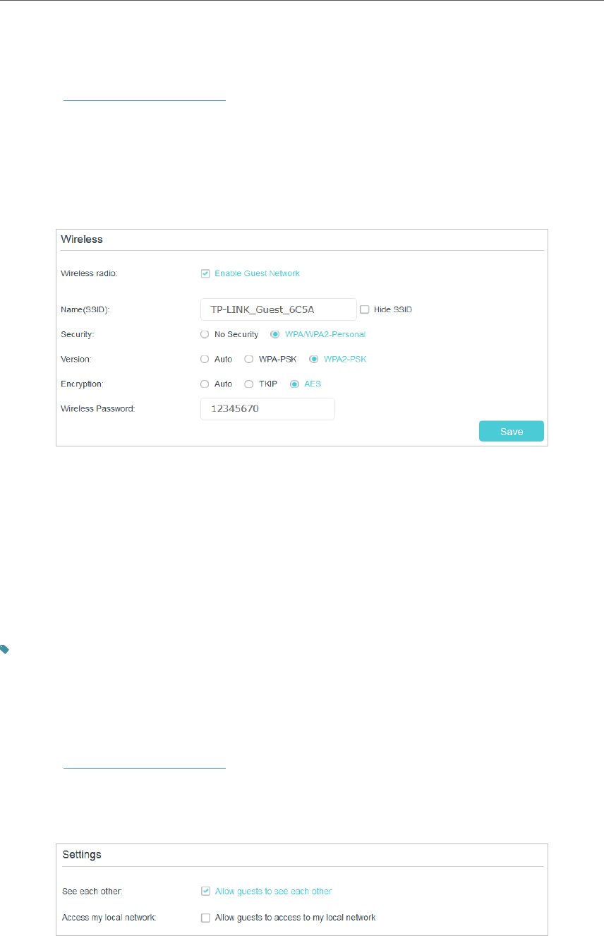 4. Click Save. Now your guests can access your guest network using the SSID and