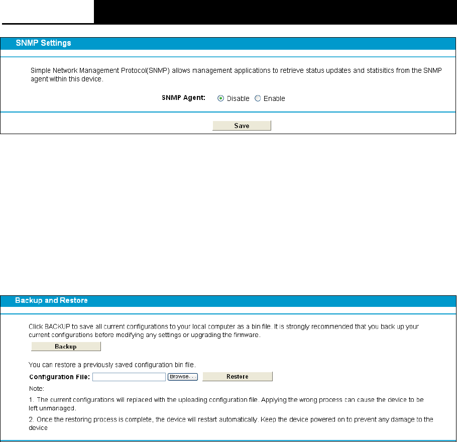 Click the Backup button to save all configuration settings as a backup file in your local computer.