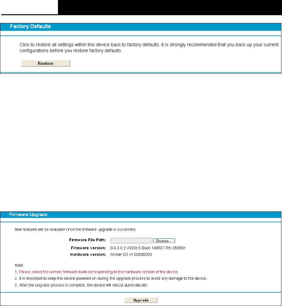 upgrade file must accord with the modem router’s current hardware version.