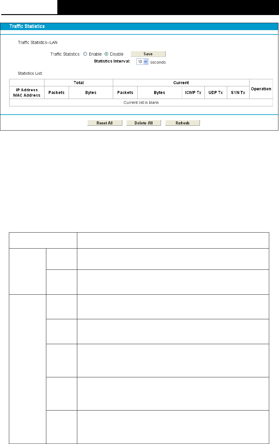 Traffic Statistics: If it is disabled, the function of DoS protection in Security settings will be