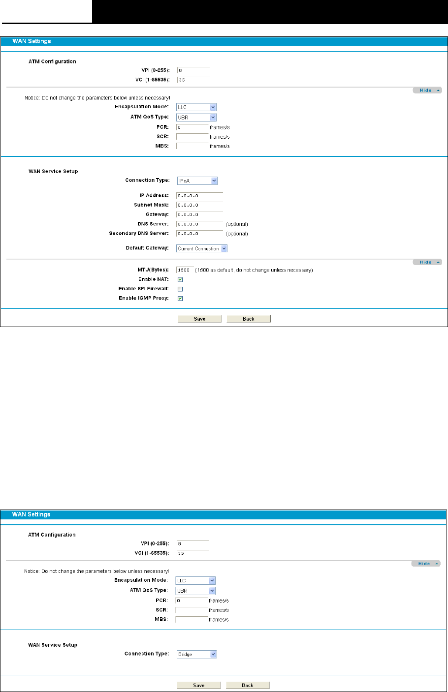 If you select this type of connection, the modem router can be configured to act as a bridging