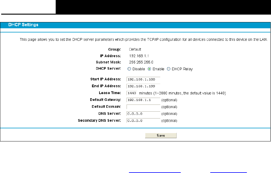 DHCP Server: If enabled, the modem router will work as a DHCP server, which provides the