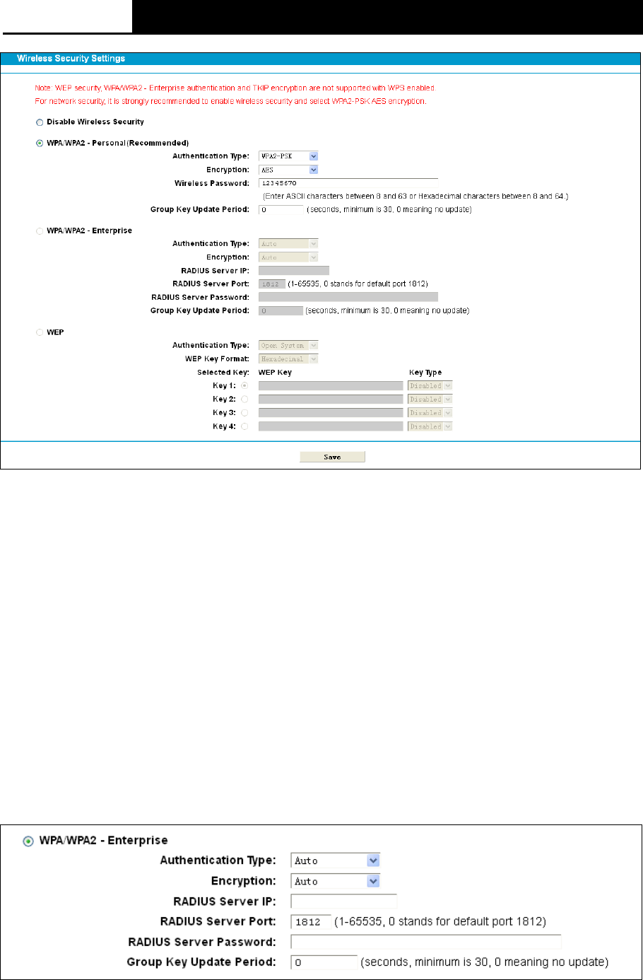 Disable Wireless Security: If you do not want to use wireless security, check this radio