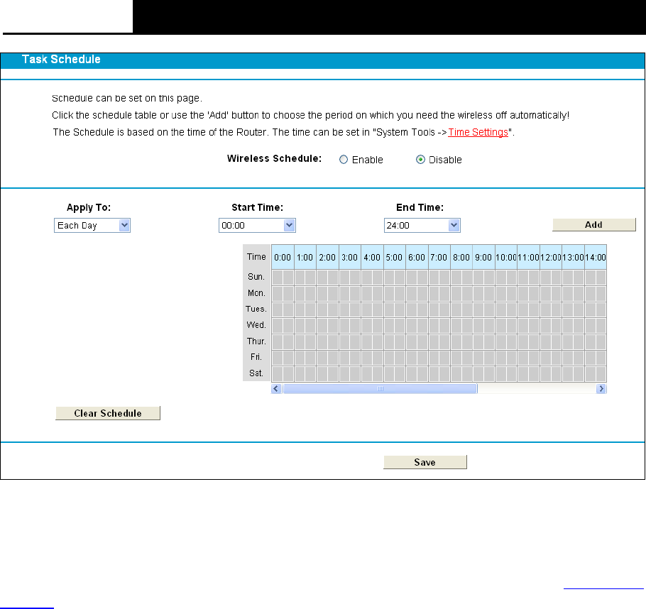 Before configure the wireless schedule, please set system time first which refer to 4.23.2 Time