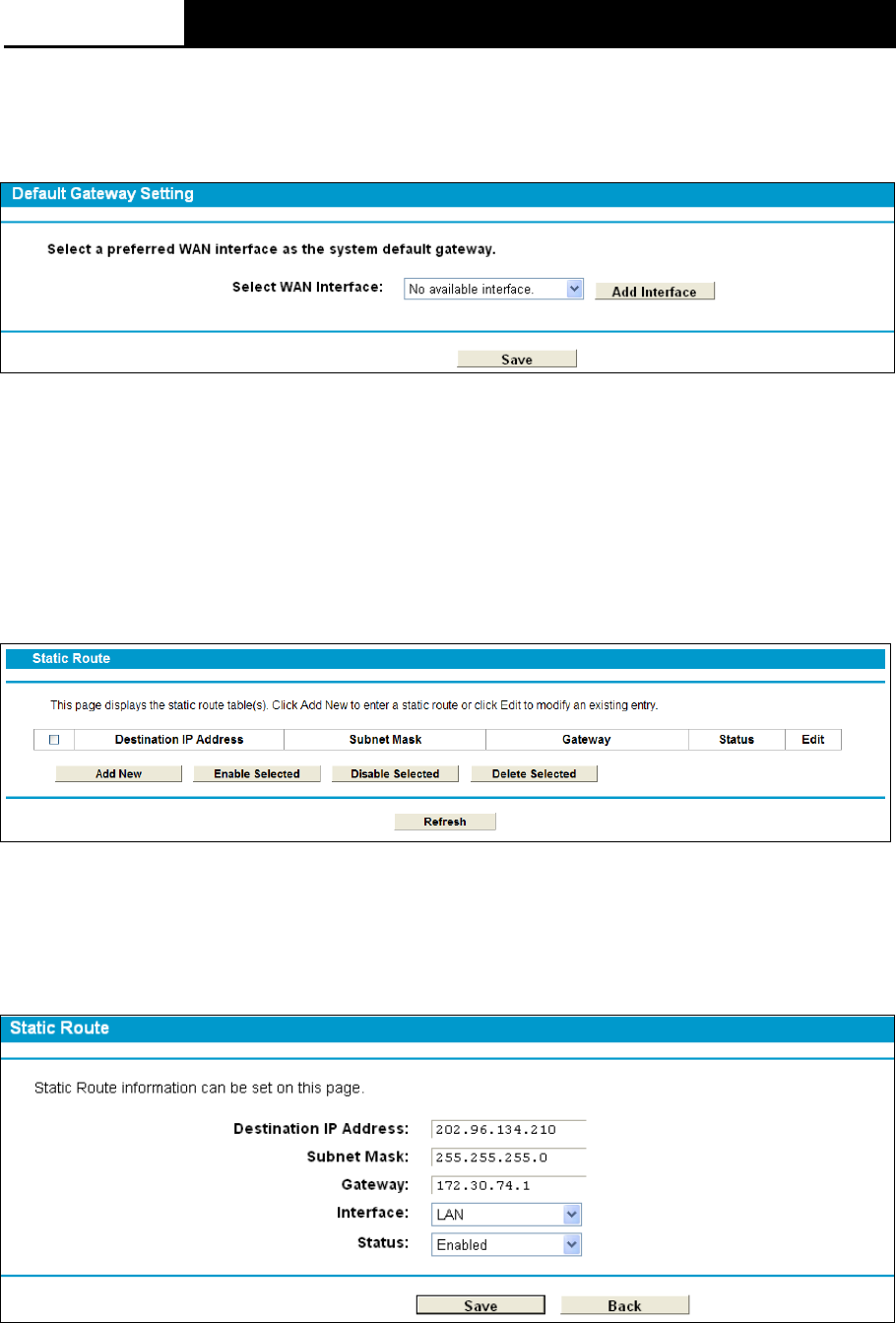 Choose “Route Settings”“Default Gateway”, you can see the Default Gateway screen. You