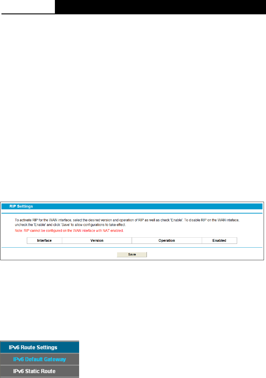 Choose “Route Settings”“RIP Settings”, you can see the RIP (Routing Information Protocol)