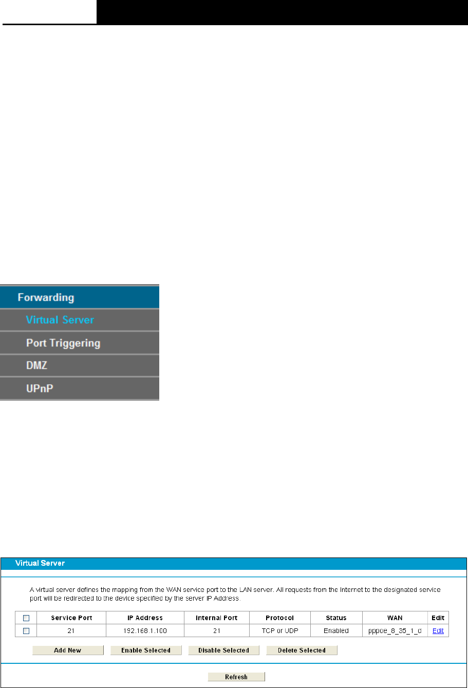 Choose menu “Forwarding” → “Virtual Server”, and then you can view and add virtual servers