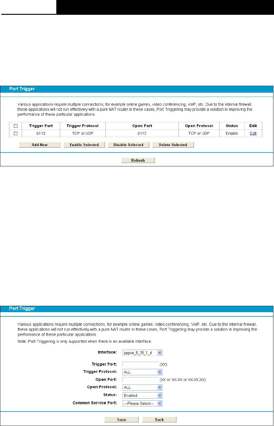 “Port Triggering”, you can view and add port triggering in the