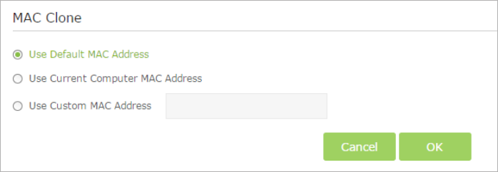 the modem router, please select Use Current Computer MAC Address.