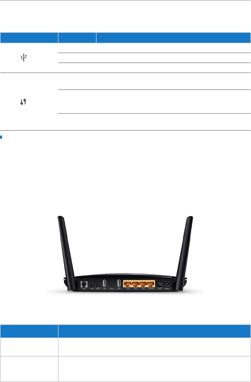 The modem router’s back panel shows the antennas, connection ports and buttons.