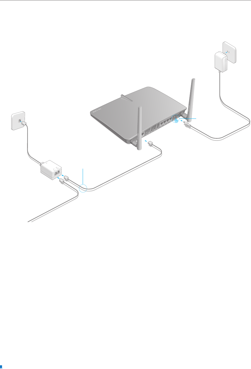 1. Connect the ADSL line and power adapter. The electrical outlet shall be installed