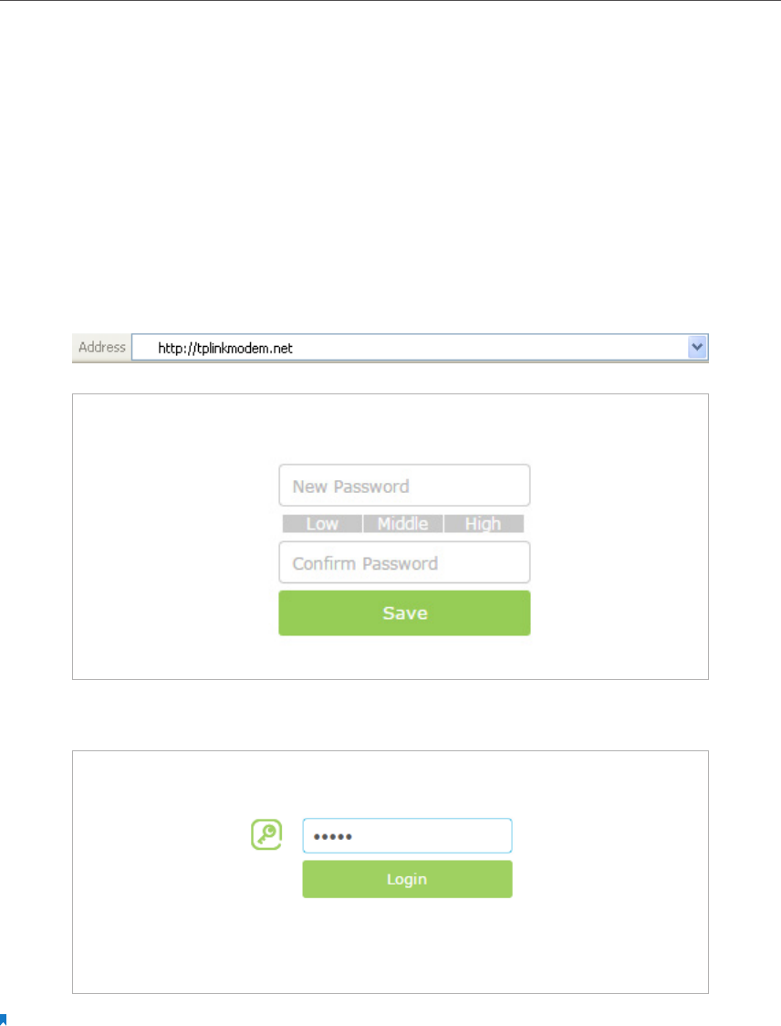 2. Launch a web browser and type in http://tplinkmodem.net or http://192.168.1.1. Set