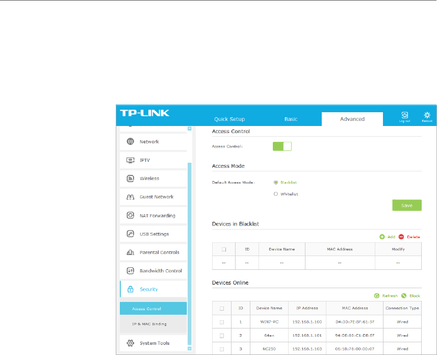 2. Go to Advanced > Security > Access Control and enable