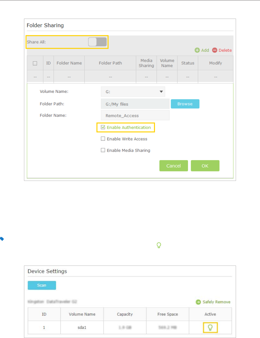 4. Tick Enable Authentication. If you allow network clients to modify this folder, tick