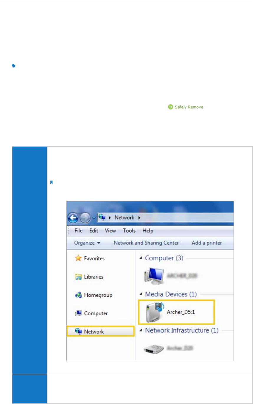 • Go to Computer > Network, then click the Media Server Name (Archer_D5 by