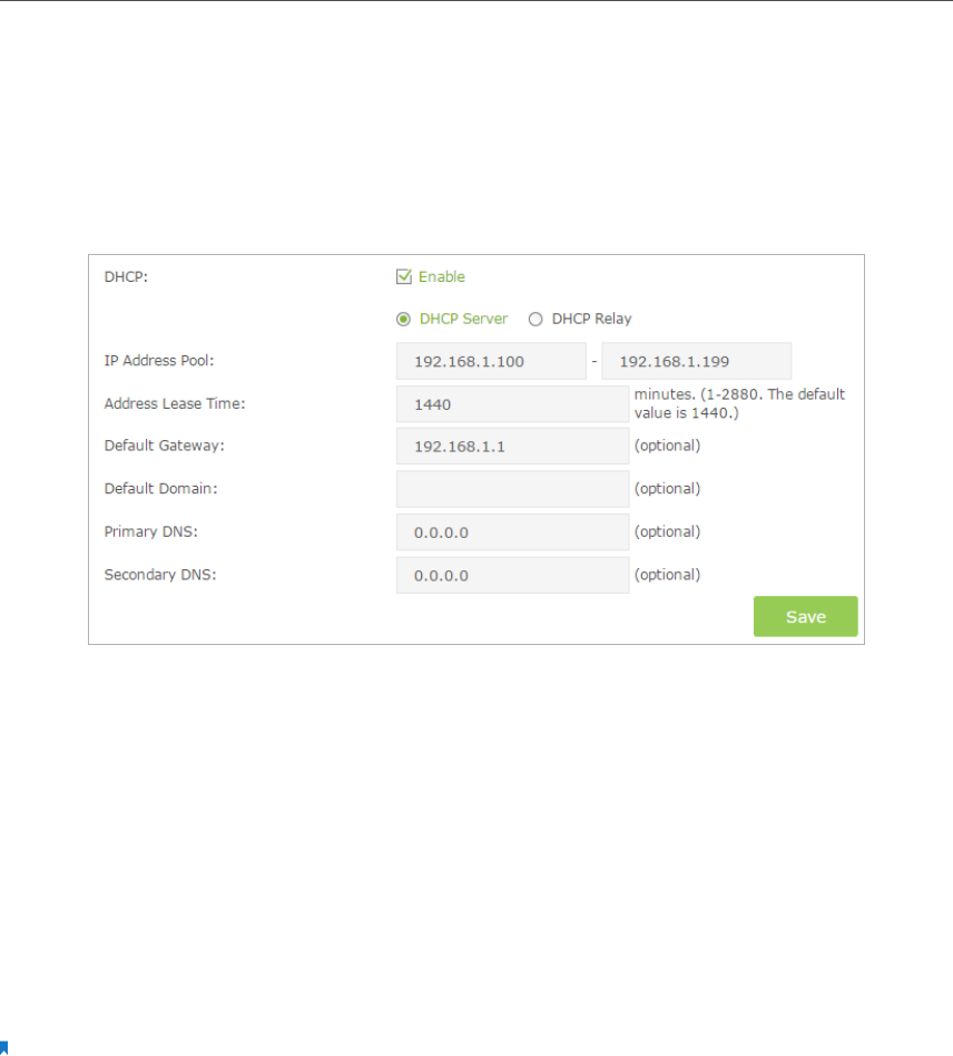 devices, thus facilitating the network management. Enable DHCP feature and configure the parameters according