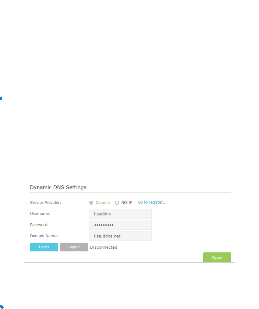 4. Enter the username, password and domain name of the account (such as lisa.ddns.