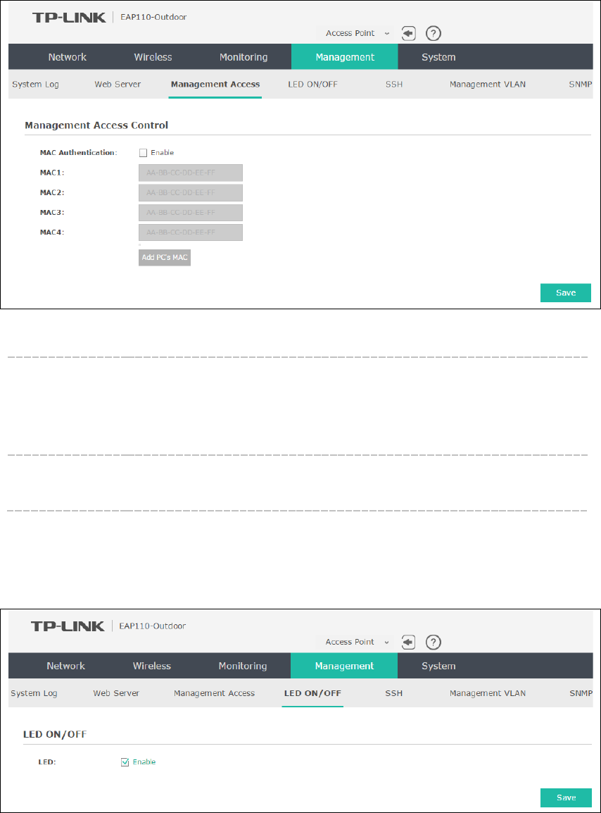 MAC1~MAC4: Enter the MAC addresses of the PCs which are authorized to log in the