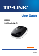M5250 Chapter 1. 3G Mobile Wi-Fi User Guide Introduction 1.1 Product Overview TP-LINK‟s M5250 is at the forefront of wireless 3G sharing. Equipped with a built-in 3G modem, you can instantly establish your own Wi-Fi hotspot simply by inserting a 3G SIM card at the interior of the device. With up to 21.6Mbps download and 5.76Mbps upload speeds, M5250 is able to provide 3G wireless sharing to up to 10 users simultaneously.