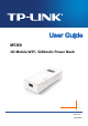M5360 Chapter 1. 3G Mobile WiFi, 5200mAh Power Bank User Guide Introduction 1.1 Product Overview TP-LINK’s M5360 is at the forefront of wireless 3G sharing. Equipped with a built-in 3G modem, you can instantly establish your own Wi-Fi hotspot simply by inserting a 3G SIM card at the interior of the device. With up to 21.6Mbps download and 5.76Mbps upload speeds, M5360 is able to provide 3G wireless sharing to up to 10 users simultaneously.