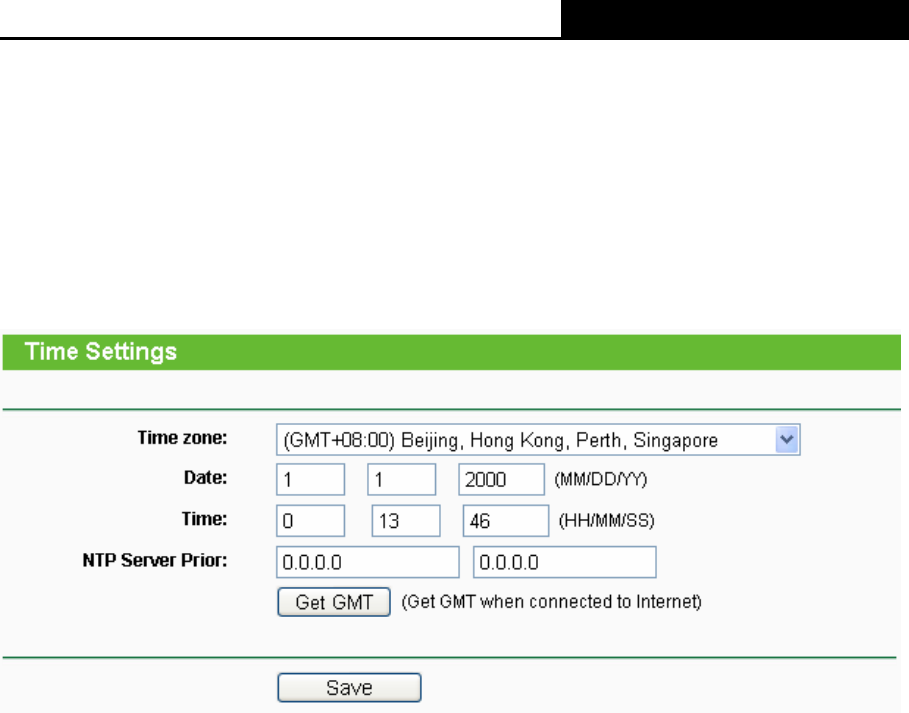 Choose menu “System Tools→Time Setting”, you can configure the time on the following