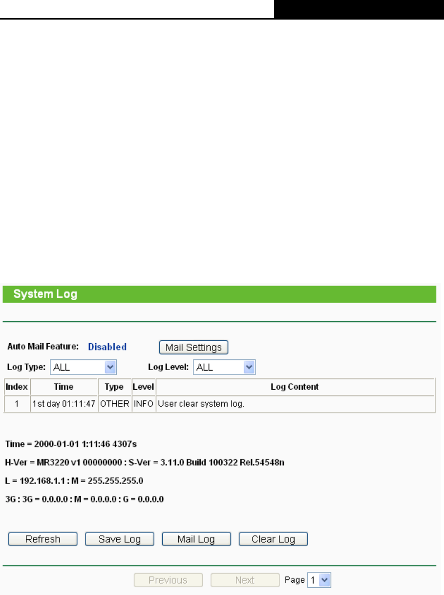 Choose menu “System Tools → System Log”, you can view the logs of the Router.