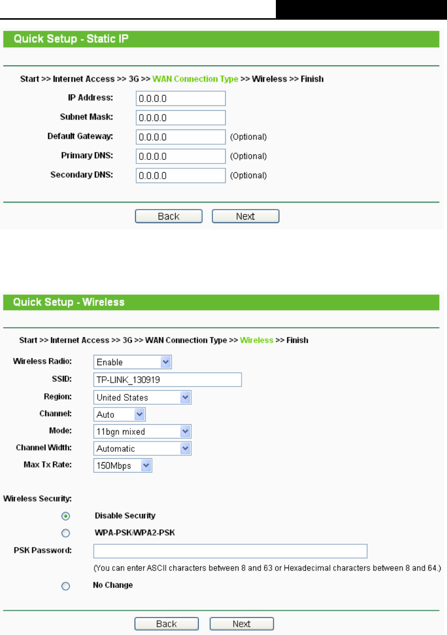 6. Click Next to continue, the Wireless settings page will appear as shown in Figure 3-11.