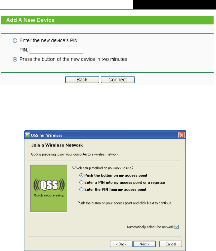 The QSS Configuration Screen of Wireless Adapter