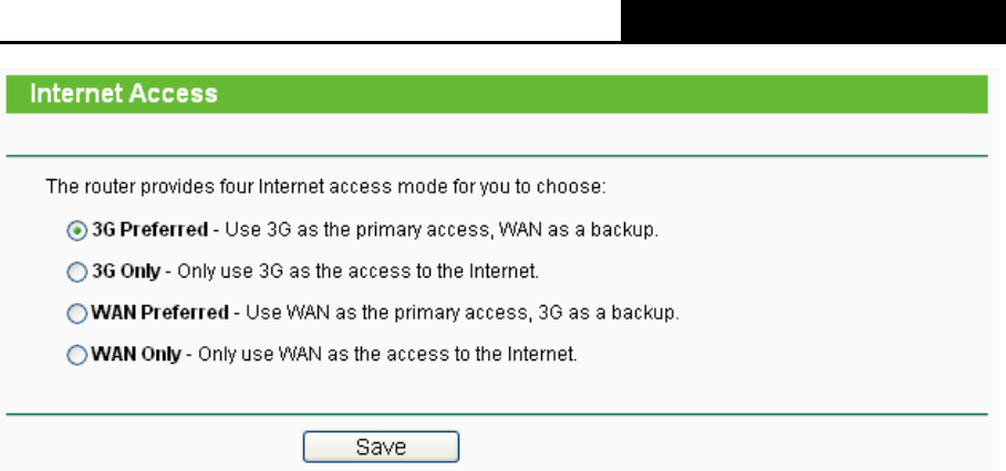 In this mode, the router will try 3G access only. WAN access is disabled.