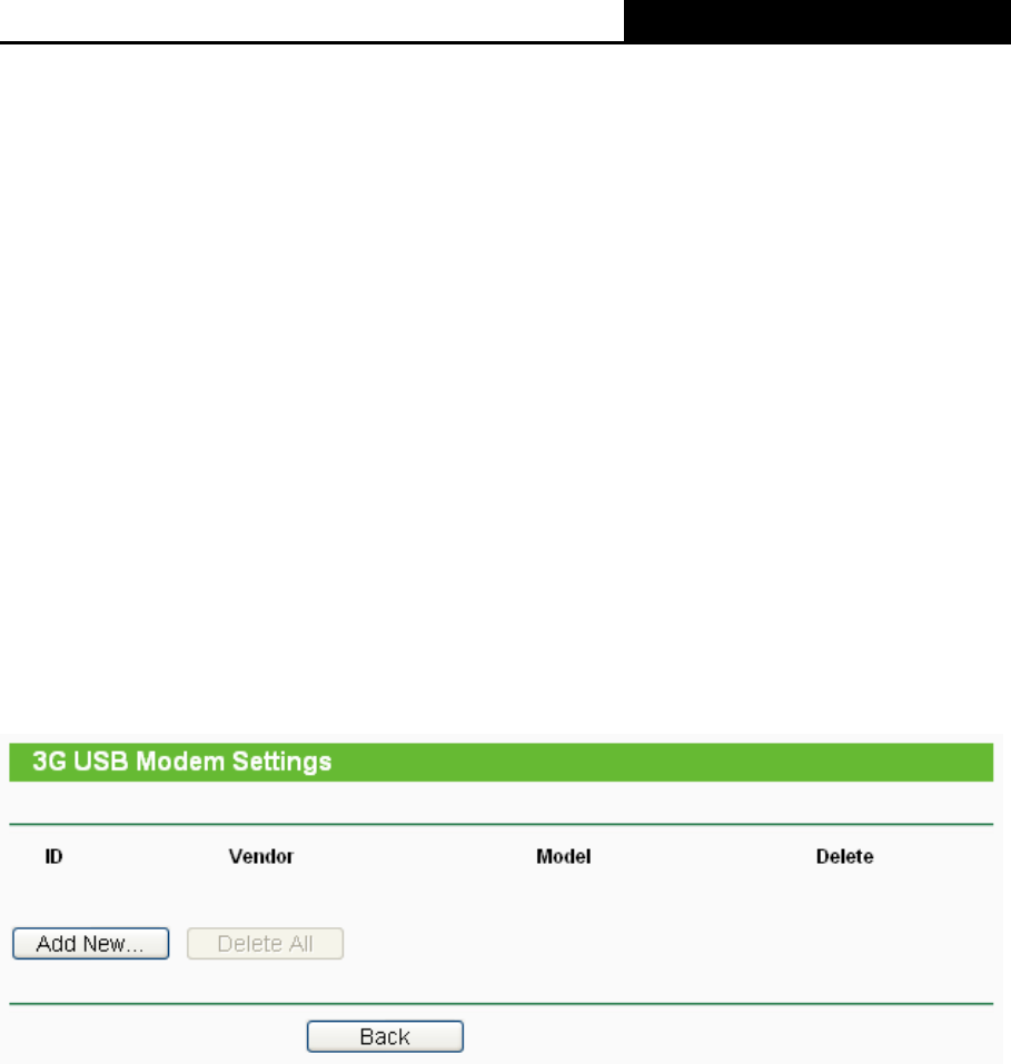 Click the Modem Settings button if your 3G USB Modem is not supported by the Router, and